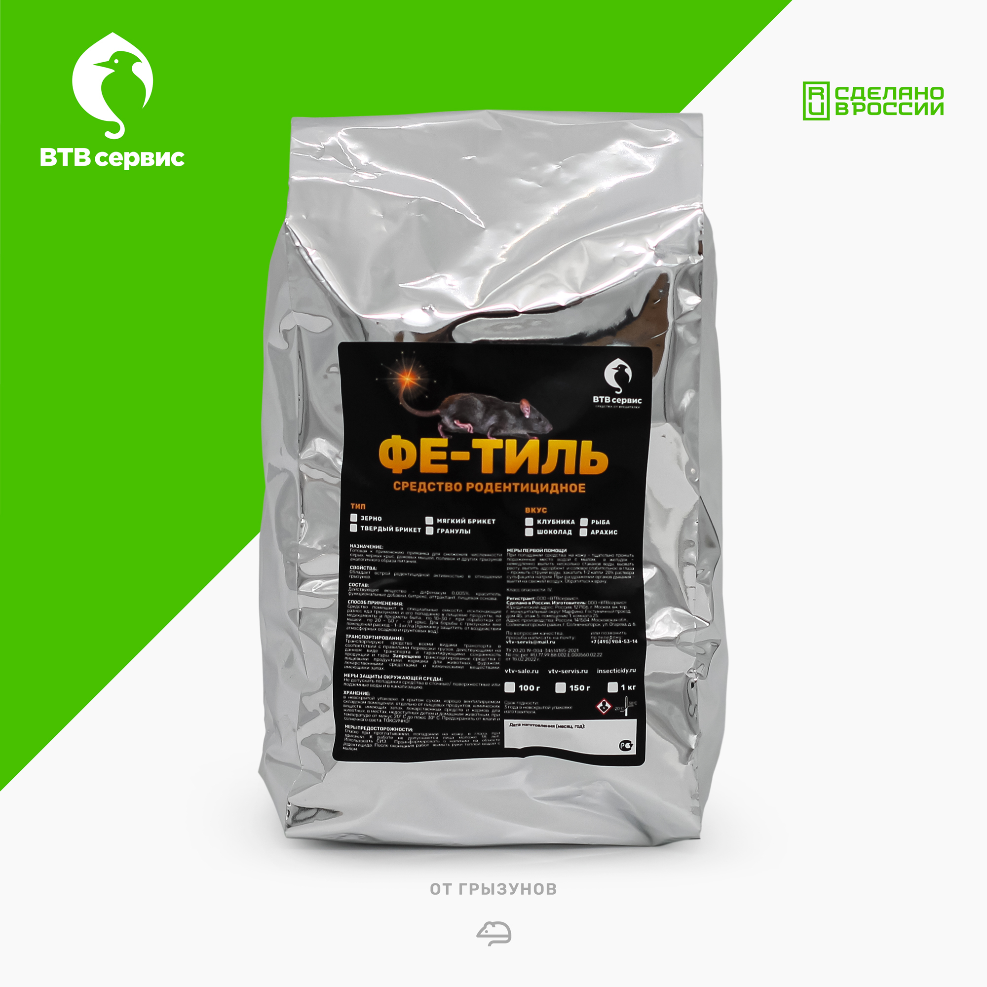 Средство родентицидное "ФЕ-ТИЛЬ" предназначено для снижения численности серых, черных крыс, домовых мышей, полевок (обыкновенных, водяных, рыжих) и других грызунов