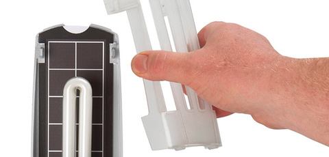 Инсектицидная ловушка действует на все виды летающих насекомых. Выполнена в виде бра. Снабжена клеевой пластиной, расположенной в задней части конструкции, замена клеевых листов производится легко и быстро. Крепится к стене.