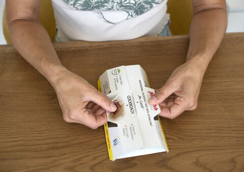 4. Разместите ловушку там, где были замечены тараканы, на ровной поверхности (в шкафу под раковиной, между шкафами, под мебелью или за ней, в ванной и т. д.) или прикрепите ловушку при помощи дополнительных клейких полосок (прилагаются) на вертикальную поверхность. Следует разместить несколько ловушек в разных местах.