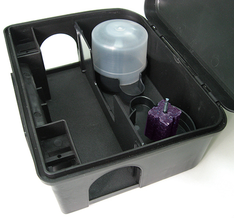 Данный вид прикормочного контейнера идеально подходит для размещения отравленной приманки и соответствует всем требованиям международных стандартов при использовании по системе пест-контроль (закрывается на ключ, имеет крепёж (адаптер) и специальный штырь для подвешивания приманки). Может применяться на предприятиях любого типа.