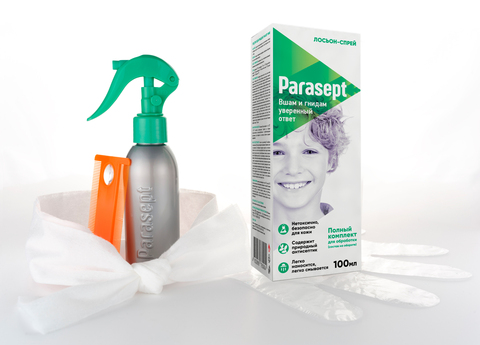 Комплект для борьбы со вшами и гнидами для любой длины и типа волос включает всё, что нужно для эффективной обработки: лосьон - спрей флакон 100 мл в комплекте с инструкцией, перчатками, защитной повязкой и гребенем с лупой для вычёсывания вшей, их личинок и гнид