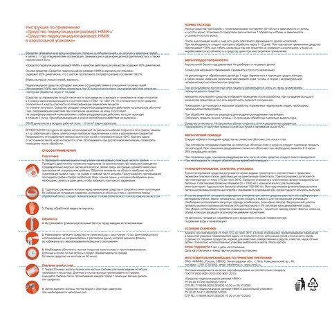 Средство предназначено для уничтожения головных и лобковых вшей и их личинок у взрослых людей и детей с 1 года. Педикулицидное средство обладает высоким острым действием в отношении головных вшей обеспечивает 100%-ную гибель насекомых при 30 минутном контакте.